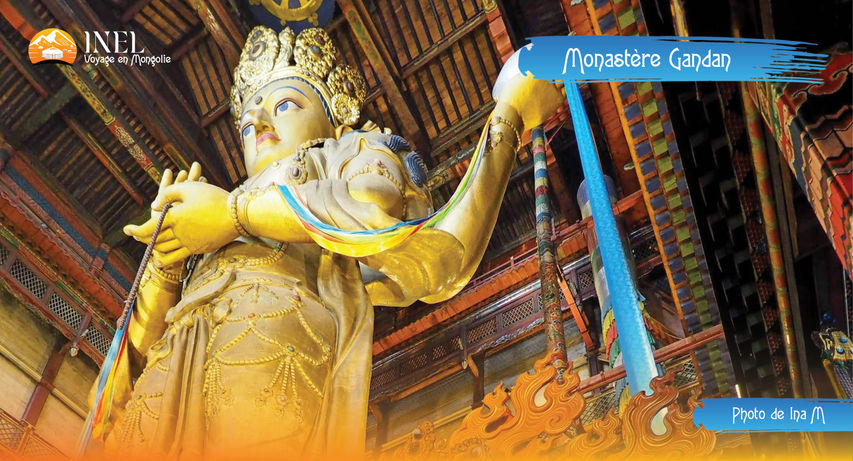 Avant de quitter la ville, nous visiterons le monastère bouddhiste de Gandan. Construit en 1809, il est le plus important d’Oulanbator. Nous assisterons à la cérémonie du matin. Ce monastère regroupe plusieurs temples dont un qui abrite la grande statue de 26.5m de haut du bodhisattva Megjid-Janraiseg (Chenrézi au Tibet). Vous pourrez y voir de nombreux fidèles mongols qui viennent y prier.